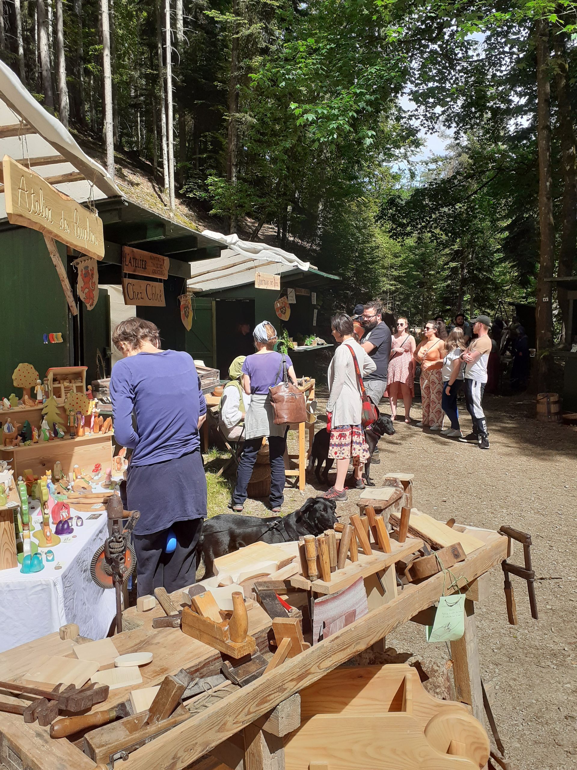 Démonstrations et ateliers participatifs : charpenterie, menuiserie, forge, maroquinerie, bijouterie, cardage de laine, poterie, vannerie, jeux pour les enfants, animaux...